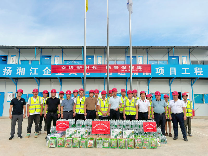 湖南省總工會到湖南湘江工程建設(shè)有限公司韶山市產(chǎn)教融合職業(yè)教育園建設(shè)項目開展“奮進新時代 防暑保安康”慰問活動