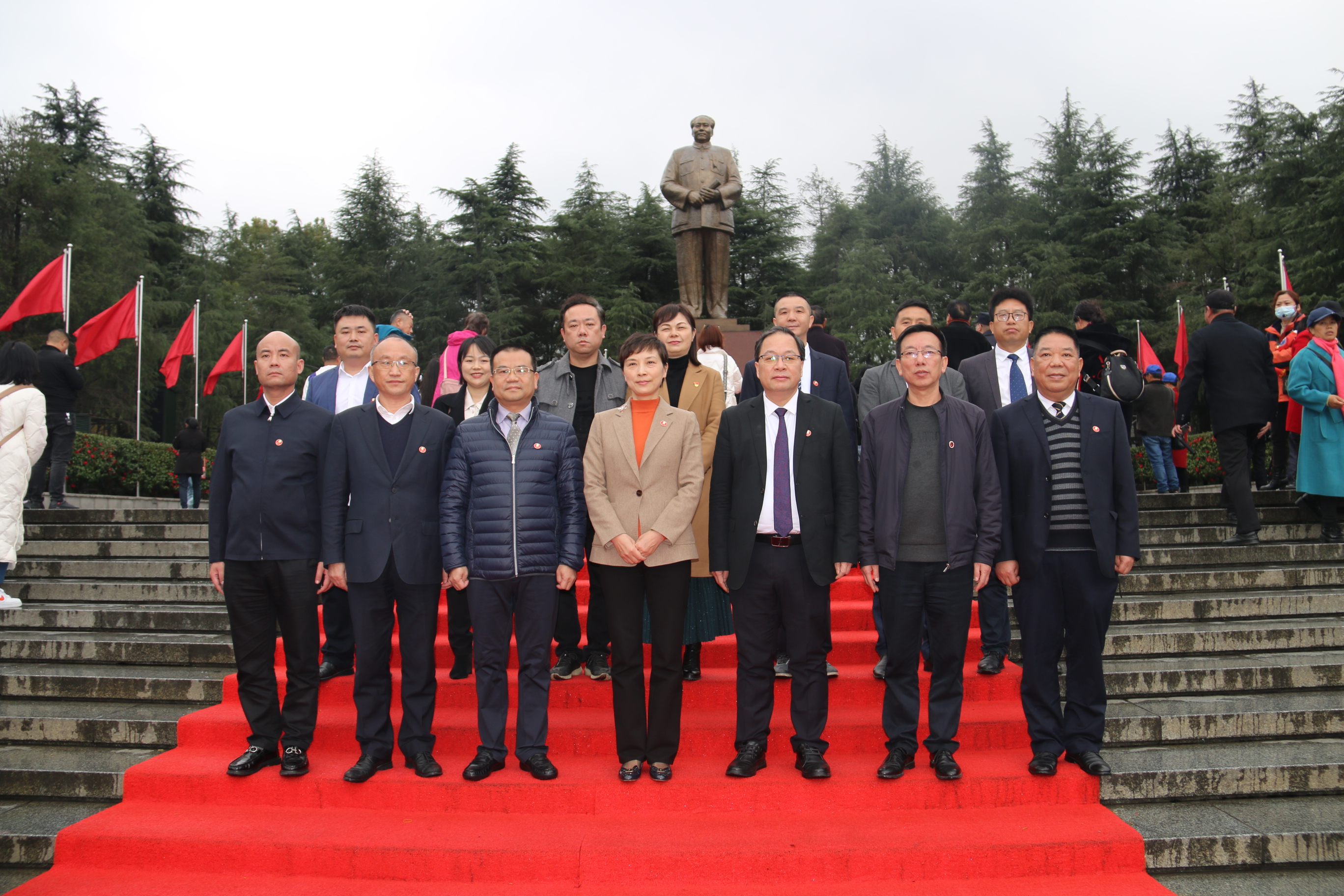 下午2時,劉鳳娟一行首先前往毛澤東銅像廣場,列隊行至瞻仰區(qū)敬獻花籃。劉鳳娟上前整理花籃緞帶,全體人員向毛澤東銅像深深三鞠躬,并緩步繞行銅像,瞻仰偉人風范,表達緬懷和敬仰之情。