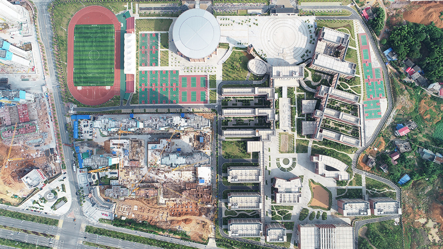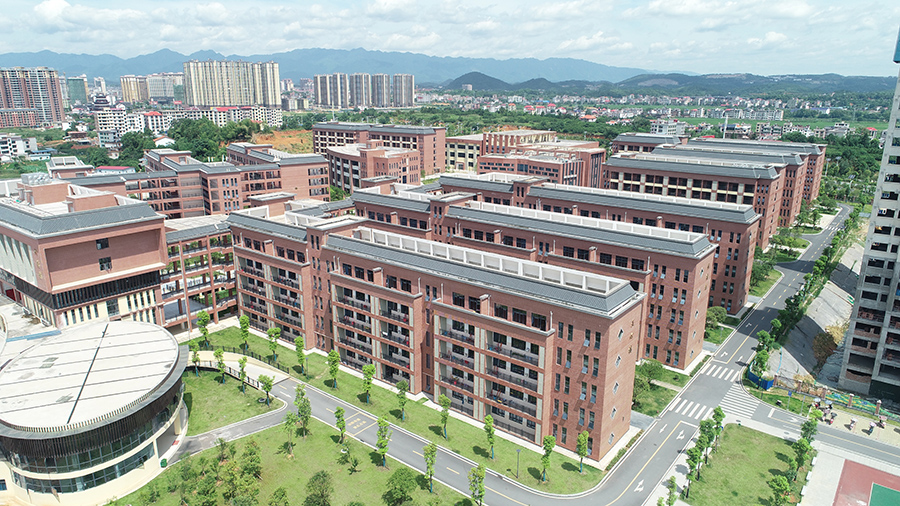 按照規劃設計,學校分為高中部、初中部兩個教學單元,共開設教學班150個,招收學生約7500名,招聘及安置教職工600余名。校區內包含行政樓、教學樓、科學館、藝術樓、圖書館、體育館、宿舍、食堂等23個單體建筑和田徑場、羽毛球場、籃球場等多項配套設施,整個校區按南北走向呈對稱布局,功能分區緊湊合理,校園自然環境優美,為武岡及周邊縣市莘莘學子提供優質的辦學硬件條件。